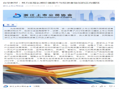 查看詳情臺(tái)華新材上榜“2024年度浙江轄區(qū)回報(bào)投資者 優(yōu)秀實(shí)踐案例”名單